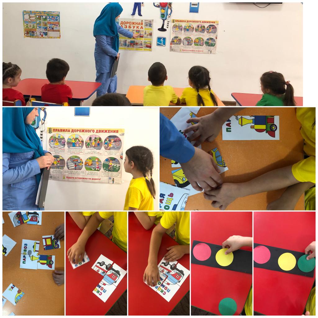 В МБДОУ "ДЕТСКИЙ САД "ЗОЛУШКА" ПОС.ПАРАБОЧ" воспитателем Мусаевой М.М. с воспитанниками старшей группы "Умники" проведено занятие, посвященное недели безопасности, на тему "На дорогу ты смотри и в беду не попади!"